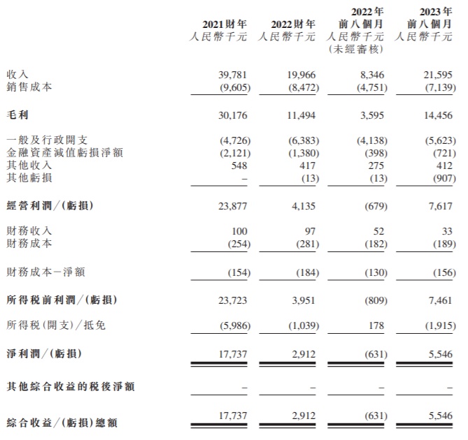 财务方面,于2021财年、2022财年、2023年前八个月,集信国控检测的收入分别为人民币3978.1万、1996.6万和2159.5万元,相应期间的净利润分别为人民币1773.7万、291.2万和554.6万元。