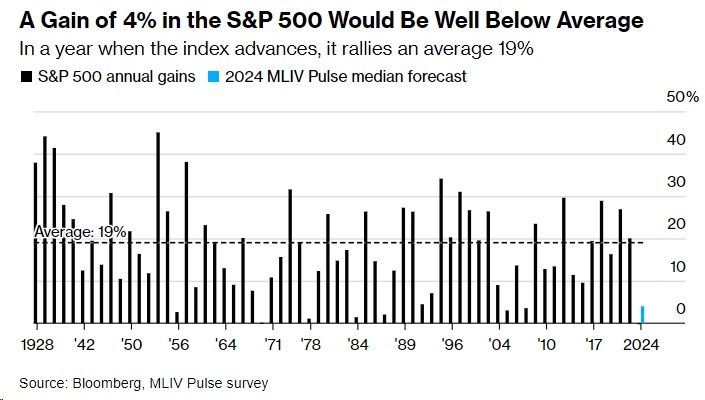 欧洲数字财富管理公司Moneyfarm首席投资官Richard Flax表示:“我们看到,潜在降息与股市之间存在一些紧张关系。”“我们目前倾向于这样一种情况,即经济增长放缓,一些公司的盈利将被下调。这让我们对2024年的股市略显谨慎。”