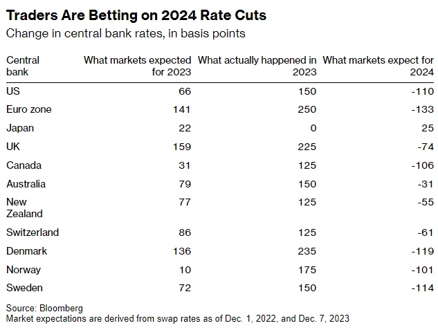 进入2024年,交易员可能会辩称,基本面更有利于他们,因为他们押注政策制定者将很快采取更温和的立场。通胀率低于一年前,而央行的政策利率要高得多,这使得明年下调基准利率的理由更加充分。