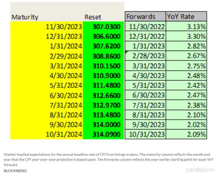 交易员们还预期,考虑到能源价格的不确定性和预计平稳的走势,明年10月份的年度总体通胀将回落至美联储的2%目标。