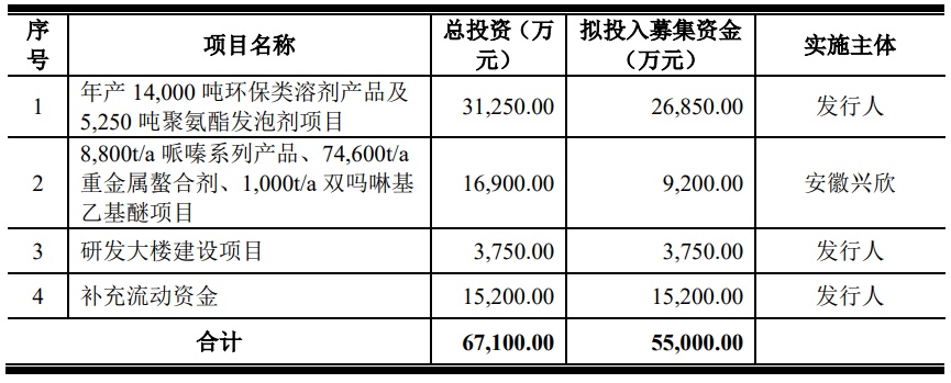 据了解,兴欣新材募集资金扣除发行费用后拟用于以下列项目: