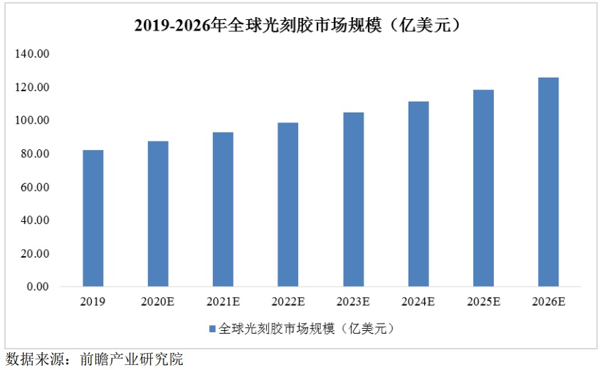 据悉,兴欣新材产品N-羟乙基哌嗪、N,N-二甲基丙酰胺可作为LCD和OLED面板光刻胶剥离液的组成部分,属于湿电子化学品。根据前瞻产业研究院的数据显示,2019年全球光刻胶的市场规模为82亿美元,预计2019年至2026年,全球光刻胶的市场规模将保持6.3%的年复合增长率,2026年全球光刻胶的市场规模预计将突破120亿美元。