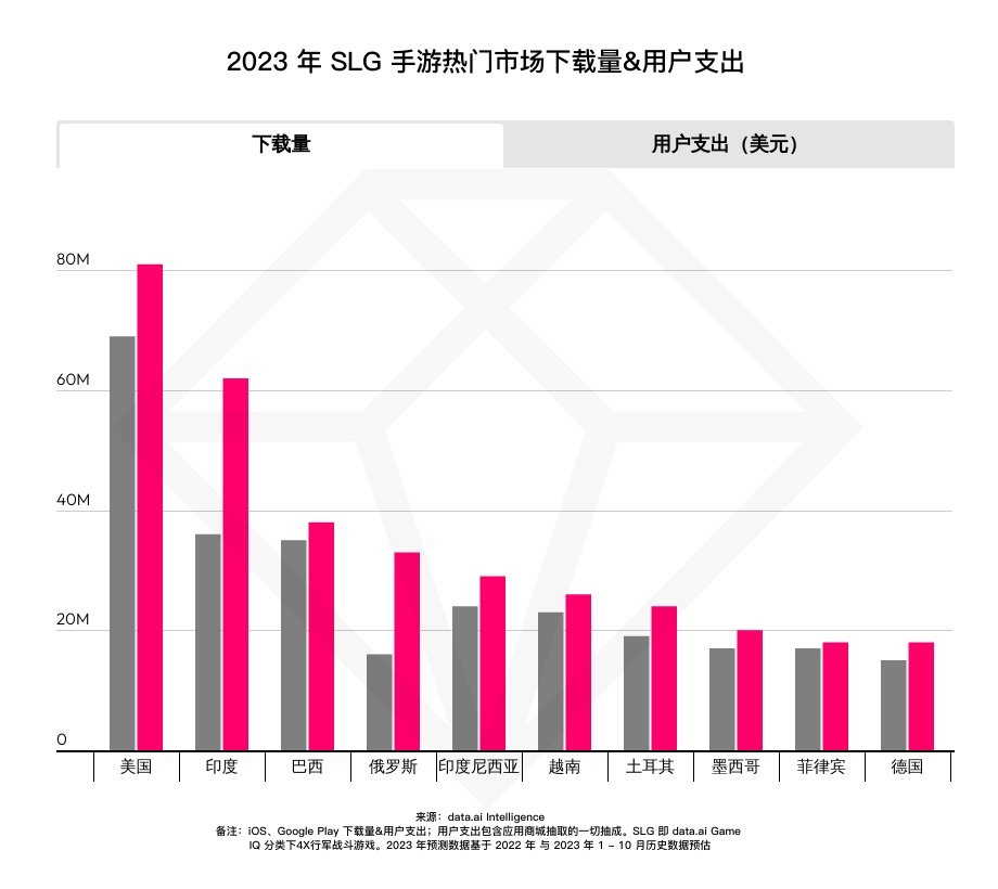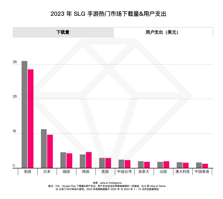 美国SLG游戏用户支出一马当先,以预计28.6亿美元远超日本、韩国。在全球用户支出回落的2023年,韩国逆势增长17.4%。