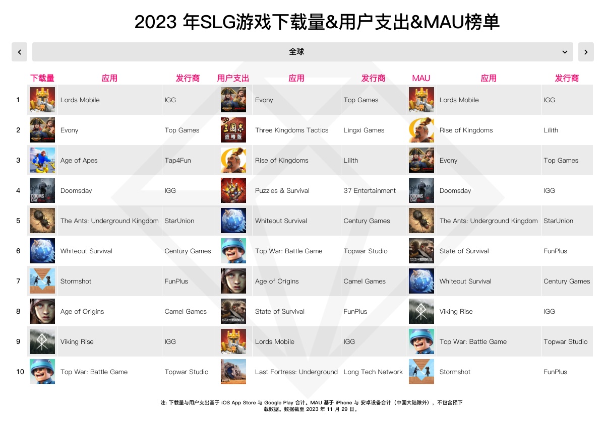 智通财经APP获悉,12月12日,data.ai数据显示,2023年全球SLG手游(即data.ai Game