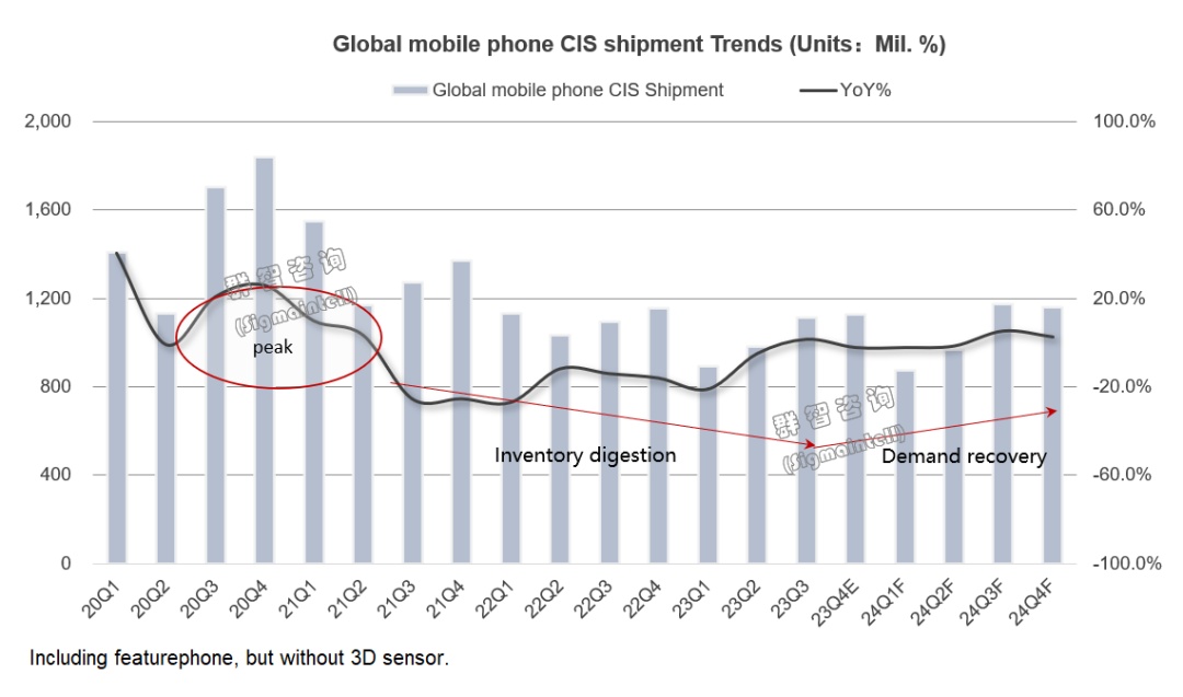 手机CIS出货量逆势增长:连续8个季度下跌后,第三季度达11.1亿颗