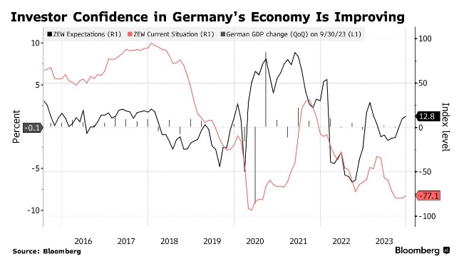智通财经APP获悉,最新数据显示,投资者对德国经济的信心意外连续第五个月改善,这表明随着通胀回落,这个欧洲最大经济体可能正在企稳。