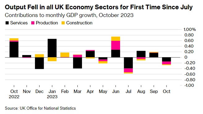 这些数据也标志着英国经济今年大部分时间略好于预期的数据的急剧逆转,这为该国下一个季度的停滞埋下了隐患。由于英国央行加息的全面影响尚未显现,预计英国经济在第四季度最多只能勉强实现小幅增长,一些人甚至预测英国经济将开始轻度衰退。