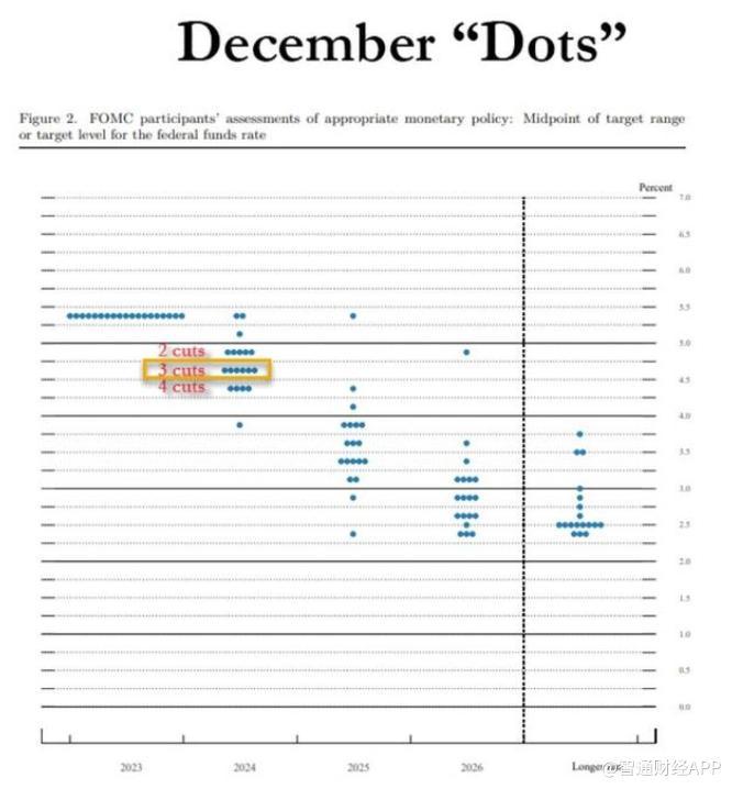 除了决定保持利率不变外,委员会成员还预计在2024年至少降息三次,每次降息25个基点。这比市场预期的四次降息少,但比官员们之前的预期更为激进。