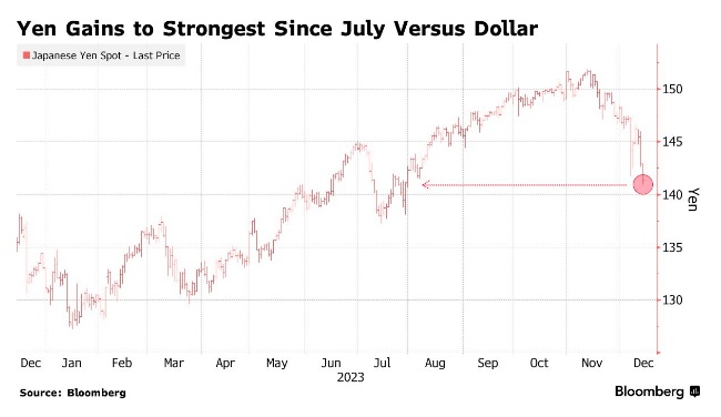 智通财经APP获悉,由于交易员加大对美联储2024年更大幅度降息的押注,同时对日本央行退出负利率的猜测挥之不去,日元兑美元周四上涨超1%。