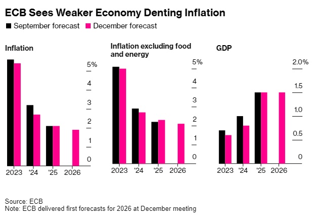 在市场押注宽松政策的热情背后,是11月通胀率大幅下跌至2.4%,降幅超过预期。欧洲央行最新的季度预测为乐观情绪提供了进一步的依据,显示明年的价格涨幅为2.7%,2025年为2.1%。到2026年,这一数字预计为1.9%。