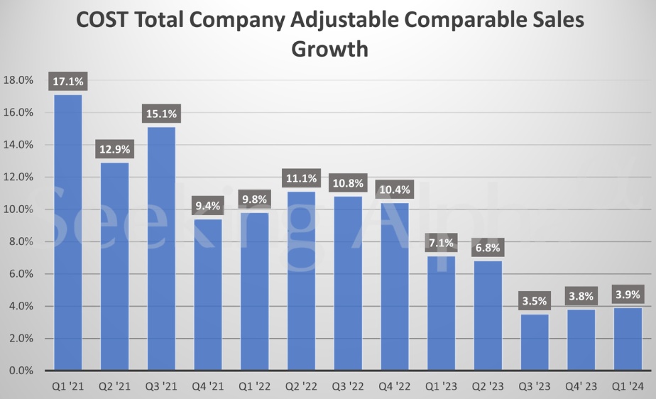 Costco的付费家庭成员总数在本季度增长了7.6%;会员费收入增长了8.2%,达到10.8亿美元,普遍预期为10.9亿美元。截止至本季度末的商品库存为180亿美元,而截止至2023年9月3日上一季度为166.6亿美元。