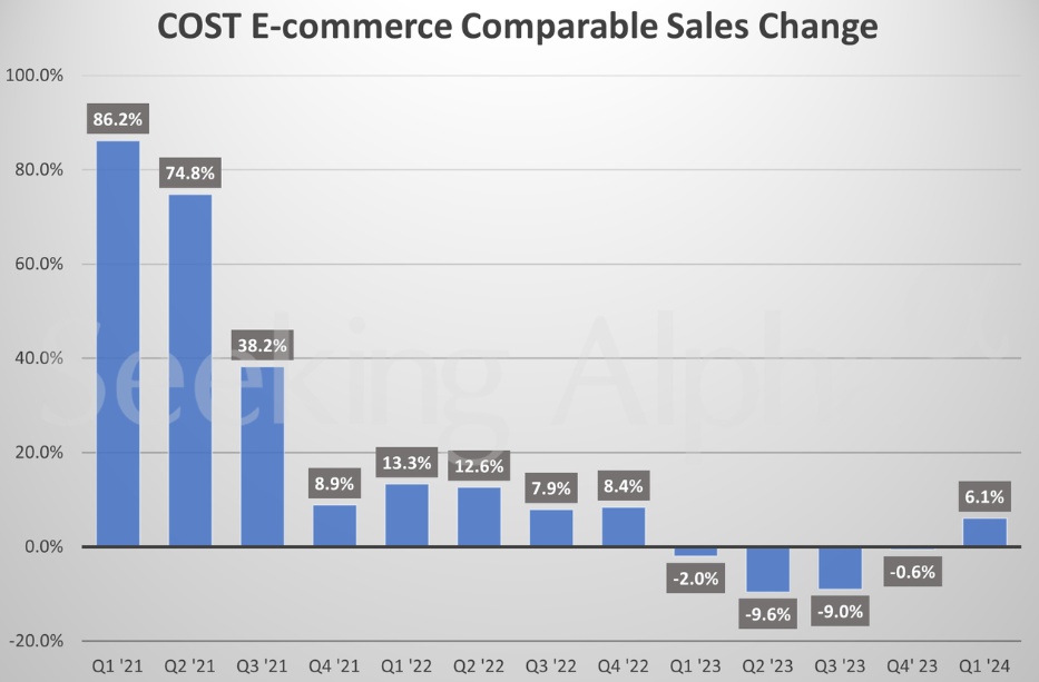 电商销售额增长6.3%,市场预期为增长6.1%。好市多的应用程序在本季度被下载了275万次,目前拥有3050万用户,同比增长10%。好市多首席财务官Richard Galanti 表示,电子商务有“很大的优势”,该团队正在实施一项为期两年的计划,以扩大他们的在线业务。