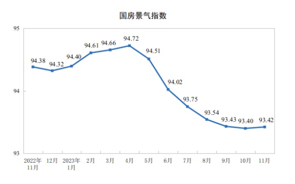 11月份,房地产开发景气指数(简称“国房景气指数”)为93.42。