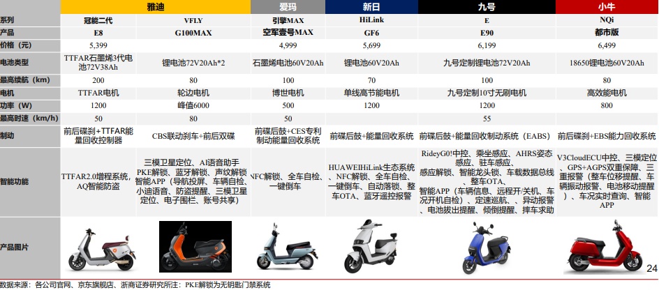 根据立鼎产业研究网数据,2023-2024年我国存在替换需求的电动两轮车的数量分别预计为3000、2500万辆,同比增速为10%、-7%。另据太平洋证券提供的数据,至2022年我国预计共保有电动两轮车3.5亿辆,相当于每4人就拥有一辆,渗透率或许已经接近“天花板”。