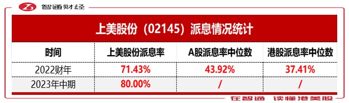 举例来看:在港上市美妆龙头企业上美股份(02145),其高派息、高成长带来的极为可观的投资价值——自去年底上市以来,上美在2022财年进行首次分红,1.4亿元净利润现金派息1亿元,派息率达71.43%,远超A股与港股派息率中位数。2023年中期,公司派息进一步提高,1亿元净利润现金派息8000万元,派息率达80%。