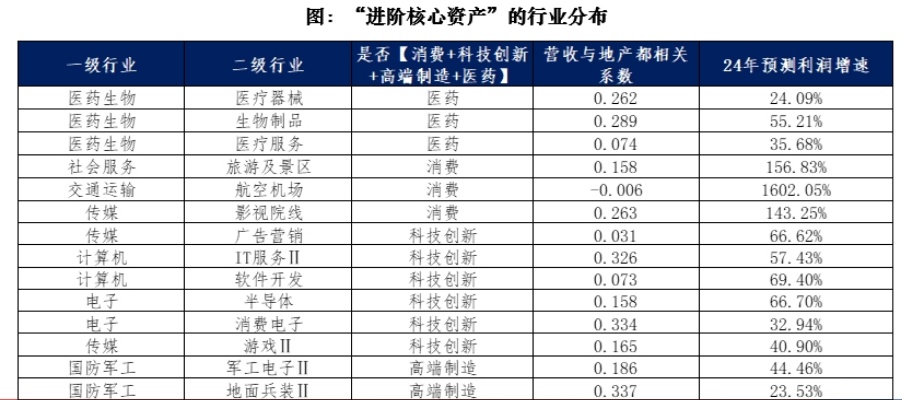 2)行业与【消费+科技创新+高端制造+医药】等经济结构新亮点相关,且营收增速和【地产投资累计同比】的相关性小于0.4。