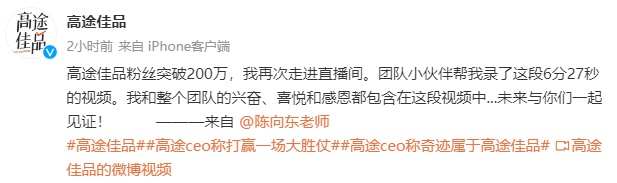 2天内涨粉超百万!高途佳品官宣粉丝突破200万