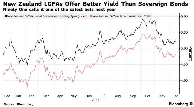伦敦的基金管理公司91英国公司(Ninety One UK Ltd.)更倾向于持有“更安全”的头寸,直到明年利率周期转变。该公司的多元资产收益主管John Stopford表示,新西兰地方政府融资机构的证券符合要求。