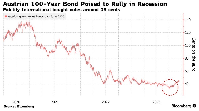 富达国际将延长奥地利债券的期限,该债券将于2120年到期,距离现在将近一个世纪。根据新加坡投资组合经理George Efstathopoulos的说法,其Global Multi-Asset Growth & Income基金在10月以1欧元兑35美分的价格买入这些证券,以后该债券可能不会再次测试这一水平。