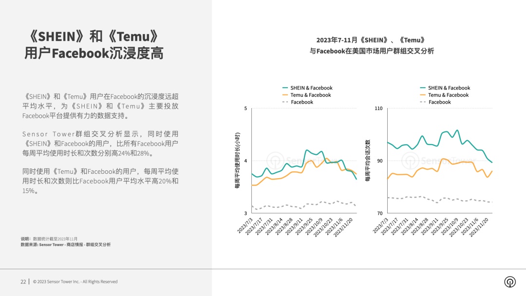 《SHEIN》和《Temu》用户使用Facebook沉浸度高