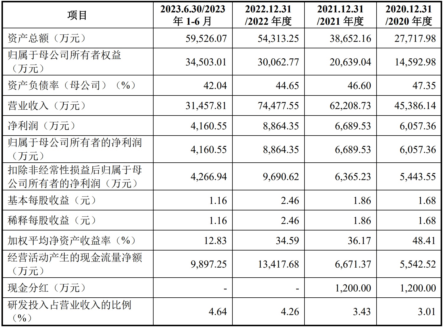 财务方面,于2020年度、2021年度、2022年度以及2023年上半年,辰奕智能实现营业收入分别约为4.54亿元、6.22亿元、7.45亿元及3.15亿元人民币。公司净利润分别约为6057.36万元、6689.53万元、8864.35万元及4160.55万元人民币。