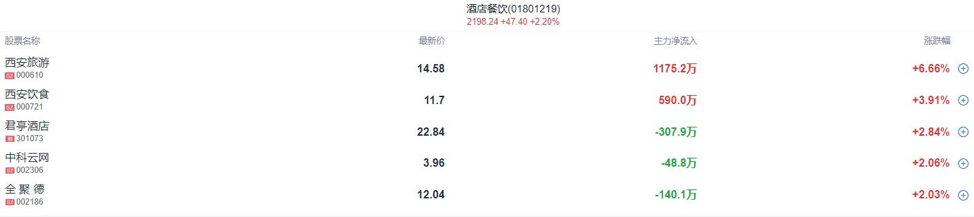旅游酒店股盘初拉升,曲江文旅涨超7%,西安旅游、西安饮食、西藏旅游、长白山等跟涨。