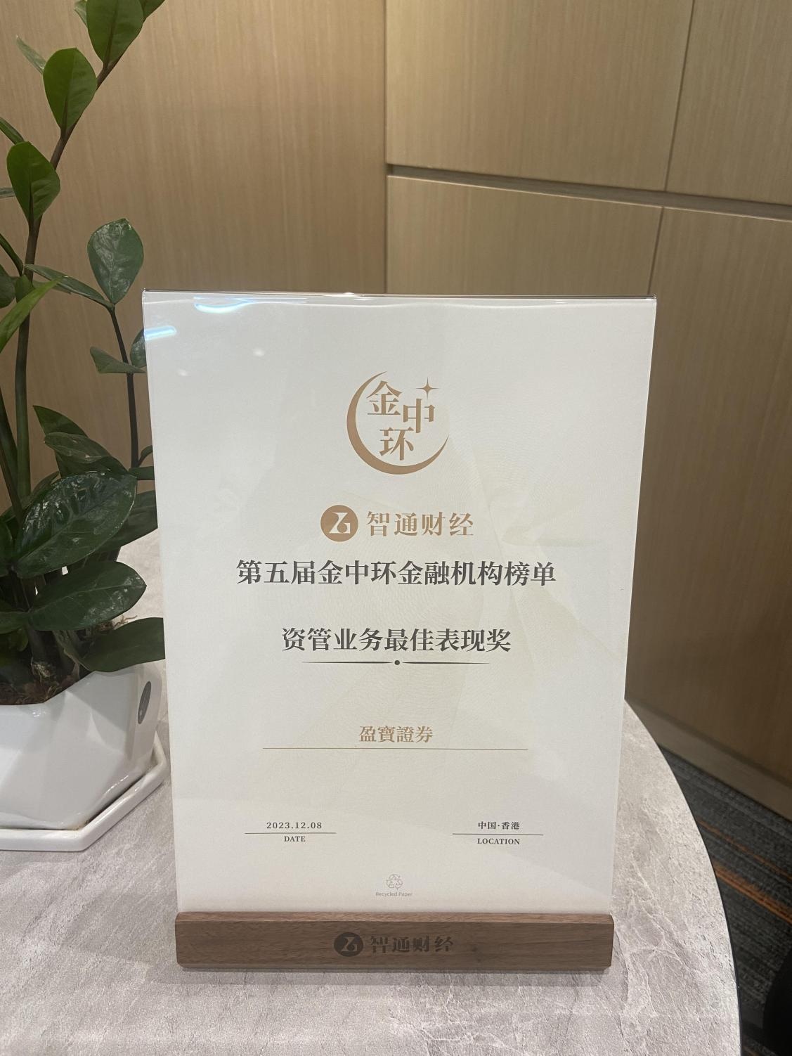 智通财经APP获悉,12月8日下午,第五届“2023·金中环论坛 ·洞察价值新征程”在香港中环举行。本次大会由全球领先的港美股资讯平台智通财经与久期财经、香港中资证券业协会联合主办。大会组委会在会上重磅揭晓了第五届“金中环”榜单。盈宝证券凭借资管业务优异的业绩表现和客户口碑获得市场认可,荣获“资管业务最佳表现奖”!
