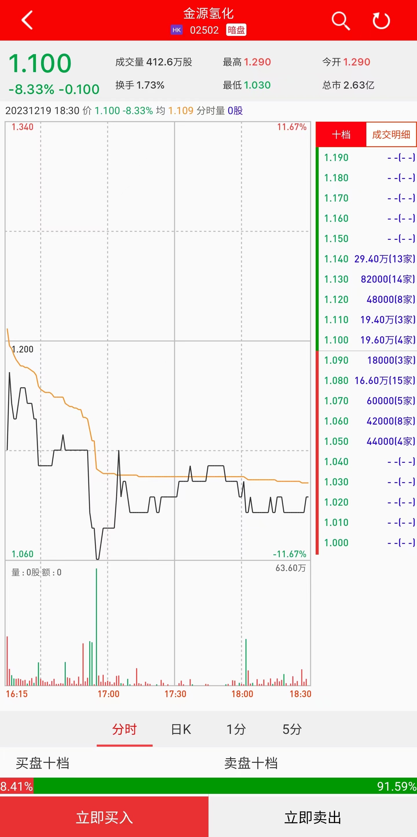 智通财经APP获悉,金源氢化(02502)将于12月20日(周三)在香港挂牌。截至收盘,利弗莫尔证券暗盘交易显示报价1.10港元,较招股价1.2港元下跌8.33%。每手2000股,不计手续费,每手亏200港元。