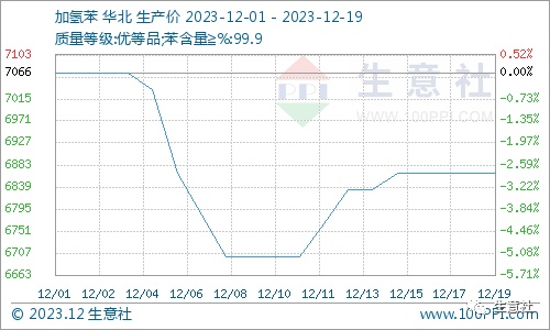 上游方面:进入12月份加氢苯行情先跌后涨,近期部分前期停车的加氢苯企业恢复开车,开工率小幅上涨,加氢苯供应整体尚可,但华东地区纯苯库存整体偏高,对现货市场心态有一定拖累。