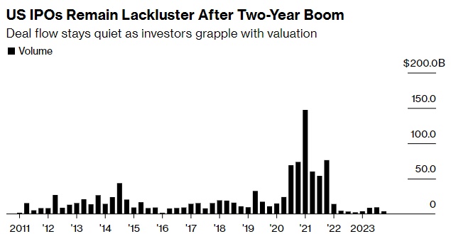 虽然今年通过在美国交易所上市所筹集的255亿美元资金规模与2021年的繁荣相比下降了90%以上,但更稳定的基本面、风险偏好的改善和利率的下降提高了交易活动增加的希望。瑞穗美洲股票资本市场主管Josh Weismer表示:“美联储的政策转向可能会将IPO潮提前至2024年。”