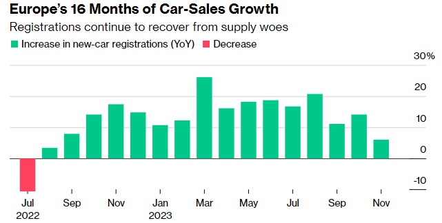 汽车制造商正在满足被压抑的需求,通胀的下降缓解了紧张的家庭预算。机构预测,今年欧洲汽车销量将增长14%。不过,欧元区经济衰退的风险依然很高,电动汽车需求已经放缓,原因是援助减少、基础设施不完善和车型不达标阻碍买家购买。