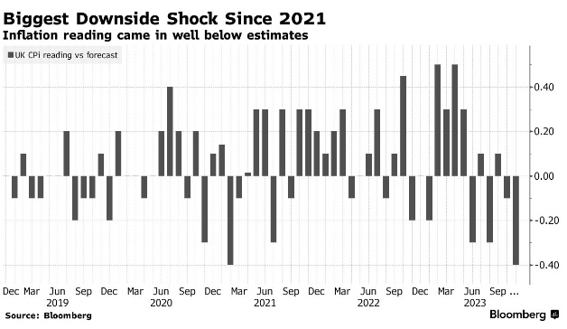 智通财经APP获悉,11月份,英国通胀放缓幅度远超经济学家预测,这一意外结果促使交易员加大押注,英国央行将很快不得不放弃其长期维持较高利率的观点。据英国国家统计局数据显示,消费者价格同比上涨3.9%,低于10月份的4.6%,放缓幅度远高于经济学家预期的4.3%。之前未有人预测价格涨幅低于4.2%。此次通胀放缓是过去四个月中的第三次意外下降,也是自2021年通胀担忧出现以来降幅最大的一次。消费者价格环比下降了0.2%,是2014年以来11月单月的最大降幅。