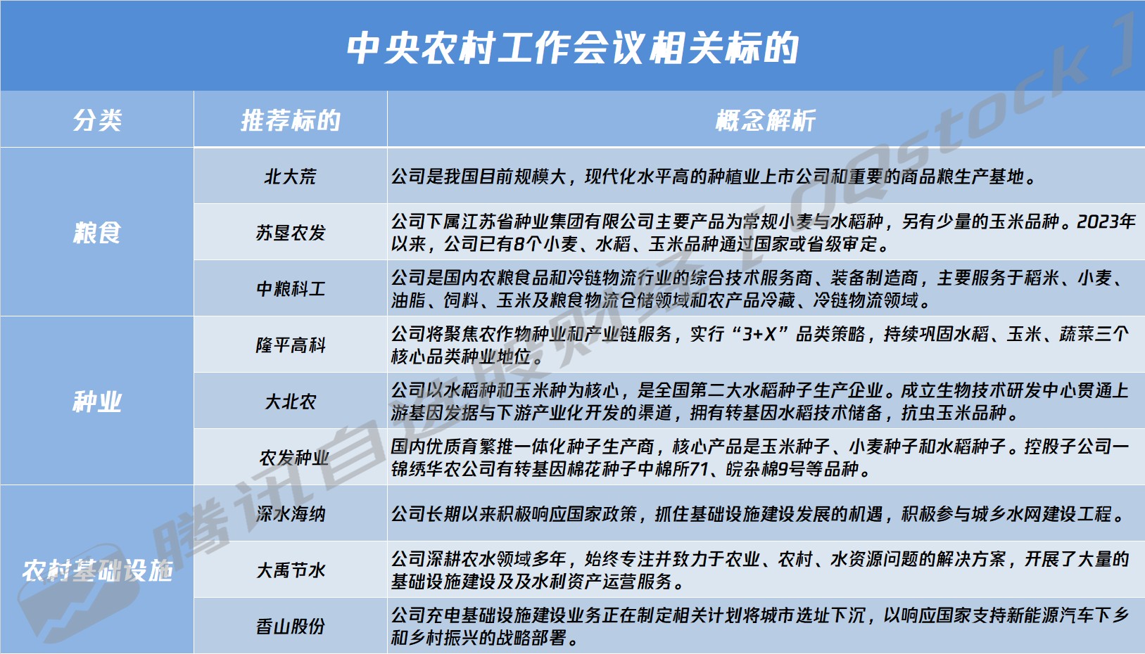 1、中央农村工作会议召开!提及种业、粮食等 受益股一览