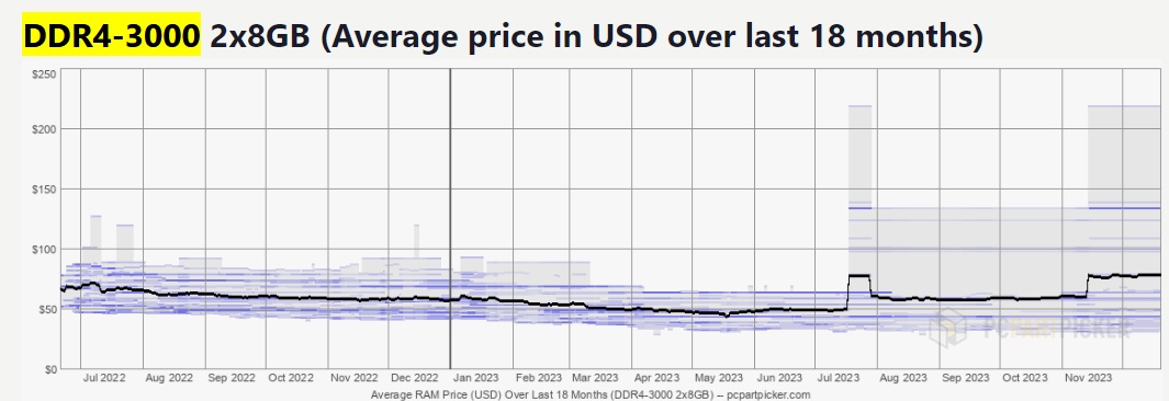 另一存储巨头SK海力士预计存储芯片市场状况从第三季度已经开始明显改善,明年将大幅改善,与三星电子的乐观预期相呼应。从适用于大多数一般计算任务DDR4-3000价格走势也能看出存储芯片市场相对于整个芯片行业的先行复苏趋势。