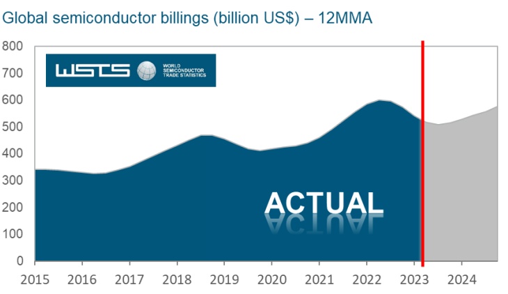 世界半导体贸易统计组织(WSTS)公布的2024年半导体行业展望数据显示,预计2023年全球半导体市场将出现9.4%幅度的下滑。不过,WSTS预计随后将出现强劲复苏,预计2024年将实现增长 13.1%。对于2024年,WSTS预测市场规模为5883.64亿美元,比上年增长13.1%,这也是对2023年春季预测增长11.8%的向上修正。