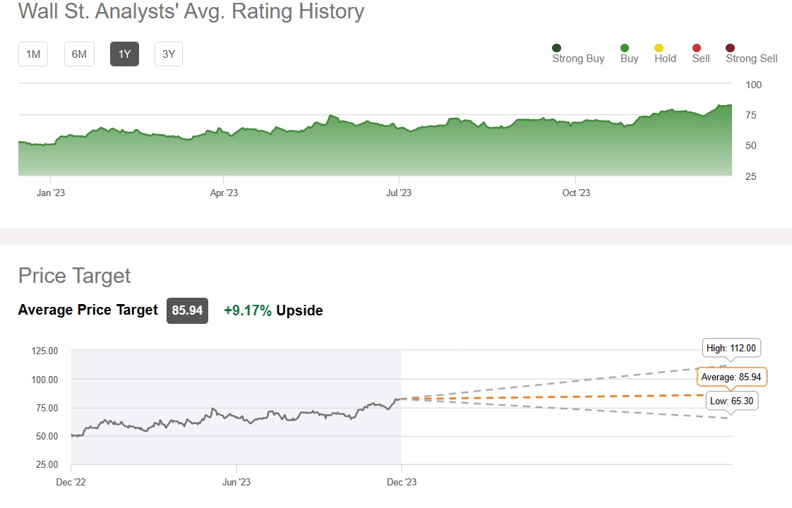 花旗表示,看好芯片行业全面复苏趋势,并将美光列为芯片行业首选股。花旗将该机构对美光的目标股价从85美元上调至88美元,维持“买入”评级。Seeking Alpha汇编的数据显示,华尔街分析师们予以美光的共识评级为“买入”,平均目标价达85.94美元,意味着未来12个月潜在上行空间达9%。