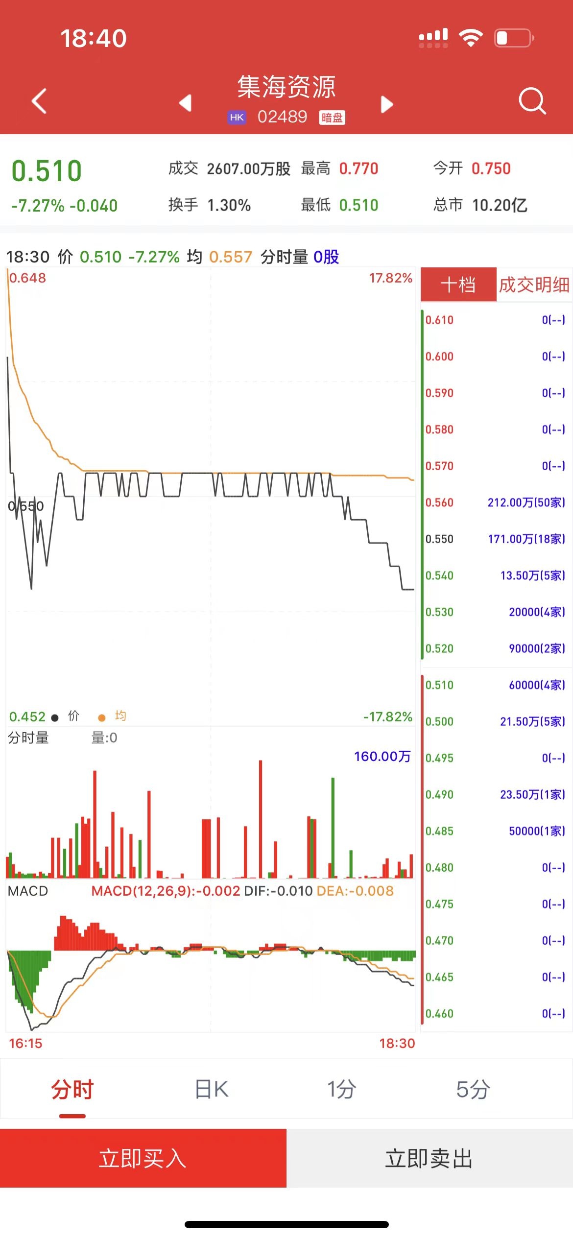 智通财经APP获悉,集海资源(02489)将于12月22日(周五)在香港挂牌。截至收盘,利弗莫尔证券暗盘交易显示报价0.51港元,较招股价0.55港元下跌7.27%。每手5000股,不计手续费,每手亏200港元。