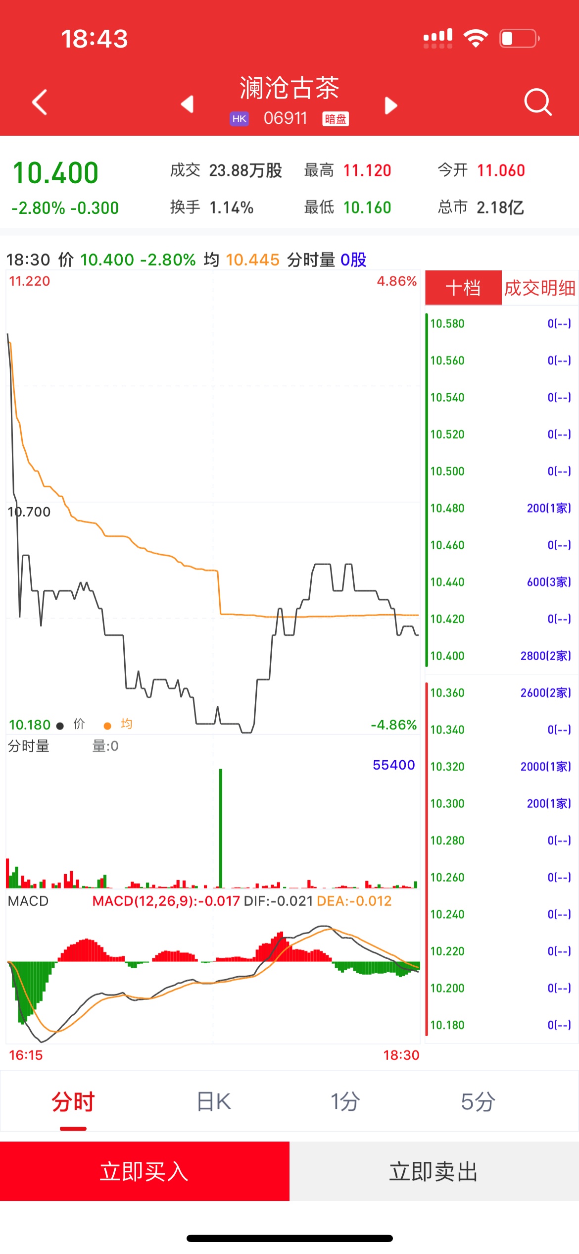 智通财经APP获悉,澜沧古茶(06911)将于12月22日(周五)在香港挂牌。截至收盘,利弗莫尔证券暗盘交易显示报价10.4港元,较招股价10.70港元下跌2.80%。每手200股,不计手续费,每手亏60港元。
