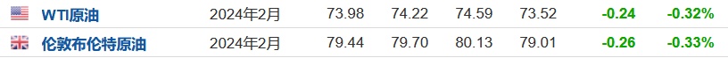 3.截至发稿,WTI原油跌0.32%,报73.98美元/桶。布伦特原油跌0.33%,报79.44美元/桶。