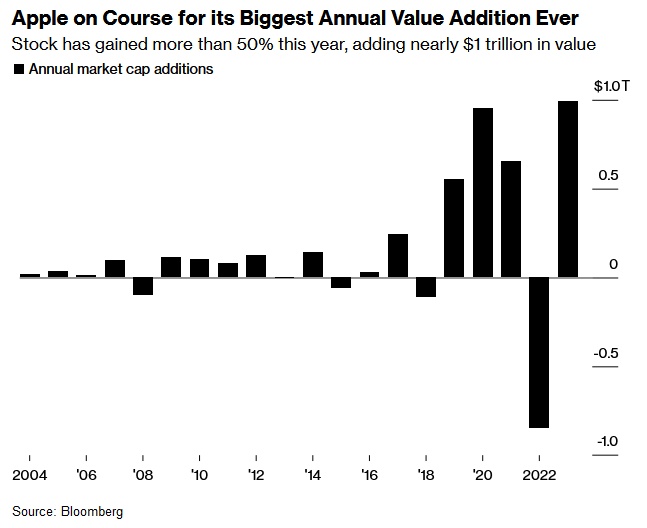 智通财经APP获悉,苹果(AAPL.US)的市值在今年以来增加了近1万亿美元。但对于这家科技巨头来说,想在2024年实现这样的增长将十分困难。