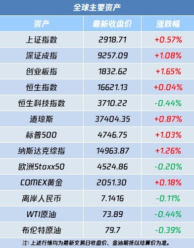 1、经济数据强化市场降息预期,美股收高纳指、标普涨超1%!中概股指涨超3%