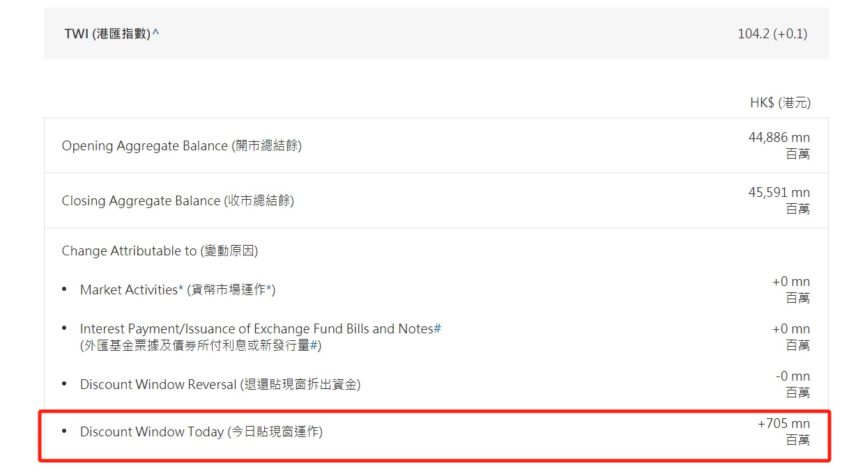 智通财经APP获悉,香港金管局再透过贴现窗向银行提供流动性,为12月以来第4次。根据香港金管局数据显示,12月21日通过贴现窗运作向银行提供7.05亿元流动性。香港金管局11月30日通过贴现窗向银行提供30亿元流动性,为8月24日以来的最大金额。