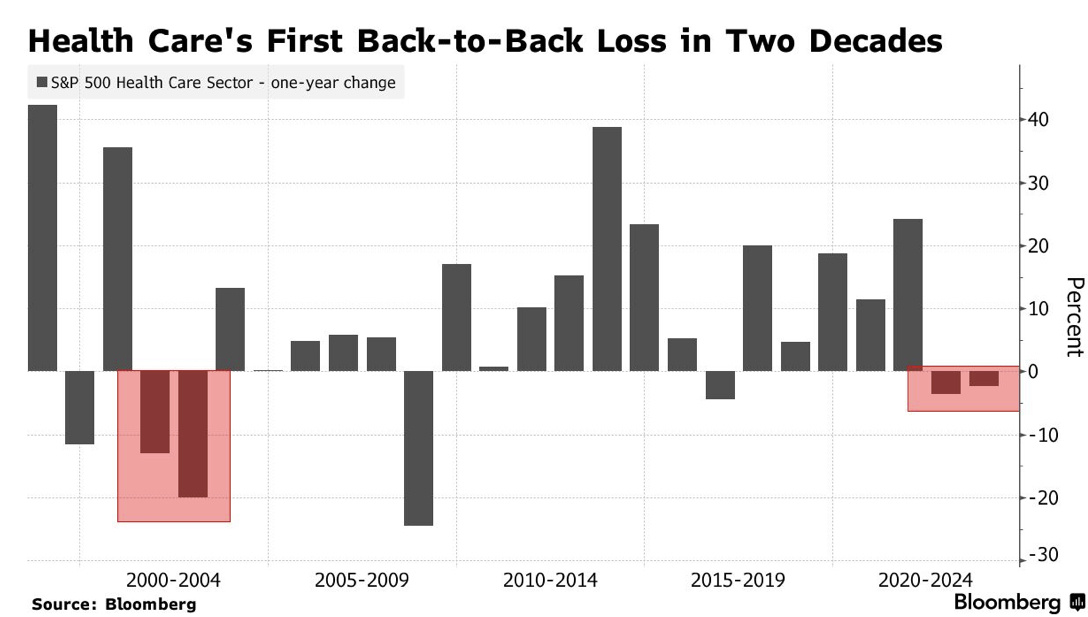 但其他医疗股的表现则截然相反。包括新特休(PODD.US)和百特国际(BAX.US)在内的医疗科技公司则遭受重创,因为投资者看到诺和诺德的减肥药物Ozempic和Wegovy、礼来旗下减肥药物竞品Mounjaro和Zepbound蚕食了从胰岛素泵到膝关节手术等所有产品的需求。再加上辉瑞公司(PFE.US)和Moderna(MRNA.US)即将出现创纪录的跌幅,美国医疗保健行业20多年来首次连续出现年度亏损。