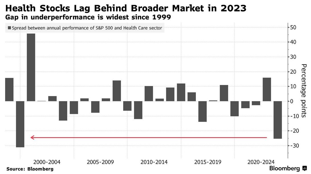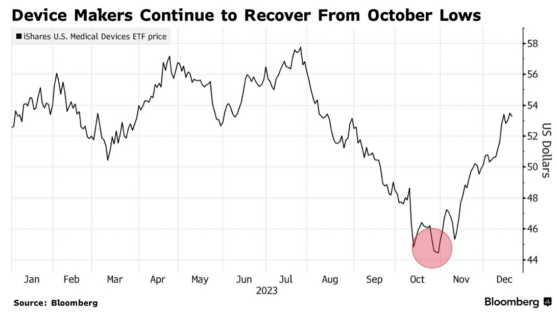 由于医疗保健类股的表现落后于标普500指数,创下近25年来的最差表现。尽快管如此,一些投资者预计,随着减肥药炒作降温,医疗保健类股将收复失地。Holz也表示,随着设备制造商从低点反弹至少30%,“世界末日的场景已经不再出现”。