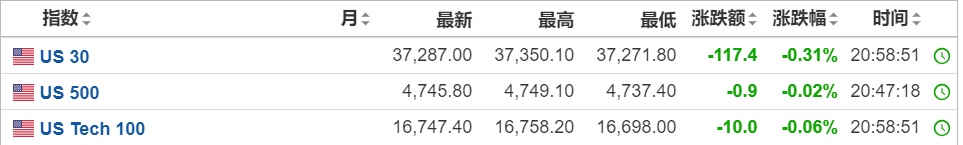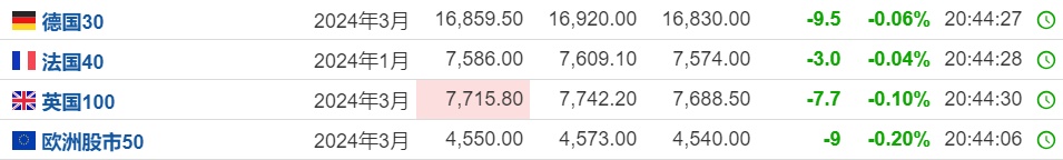 2.截至发稿,德国DAX指数跌0.06%,英国富时100指数跌0.10%,法国CAC40指数跌0.04%,欧洲斯托克50指数跌0.20%。