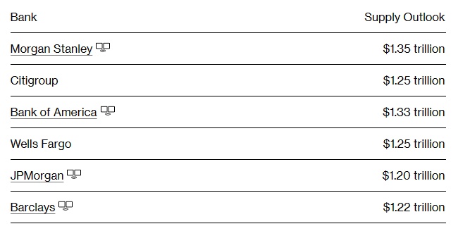 摩根士丹利预计,明年的发行量将同比增长8%至1.35万亿美元。花旗集团、美国银行、以及研究公司CreditSights都预计发债规模将进一步扩大。并购规模可能决定明年公司债销售能否达到预期。