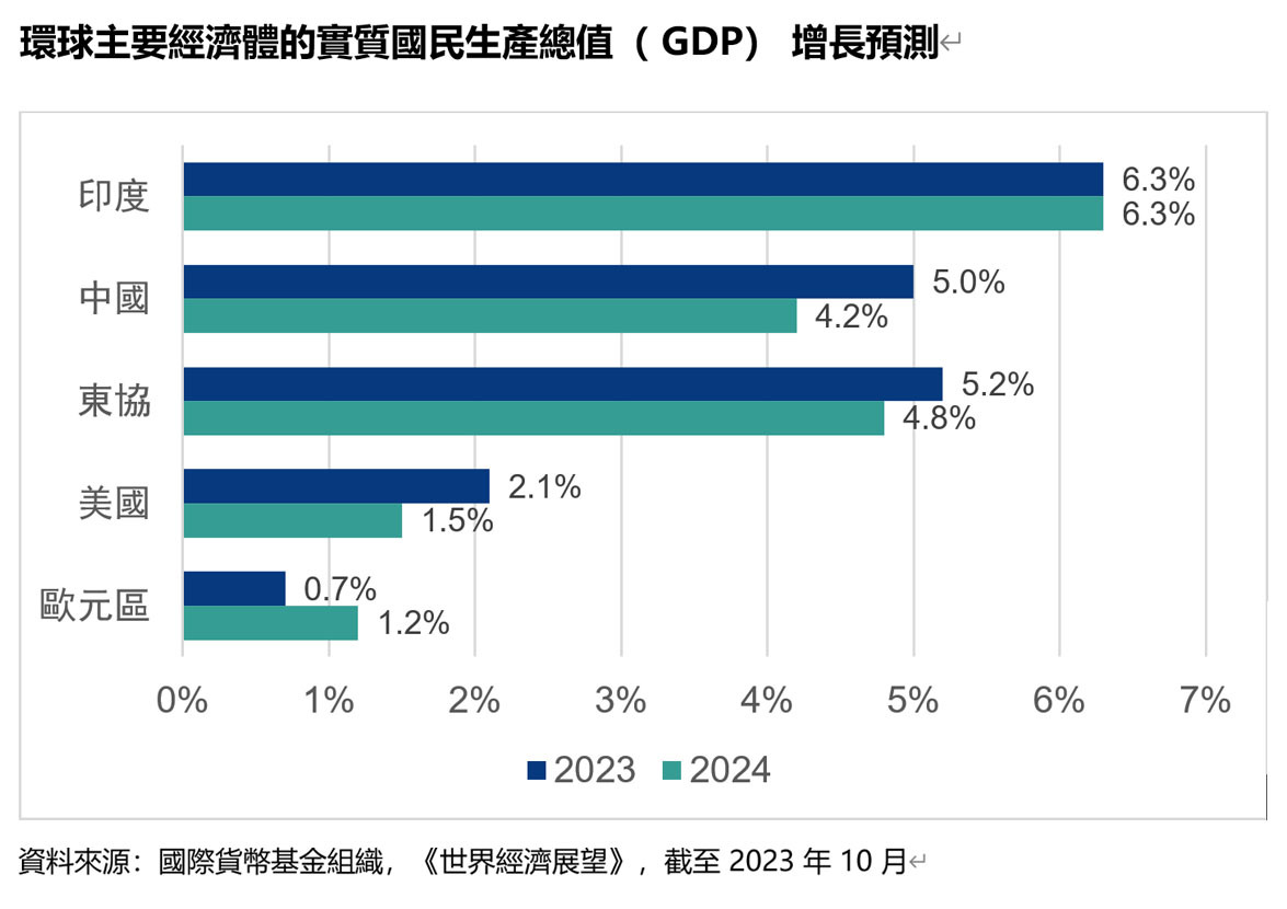 东亚联丰指出,美国财政开支和个人储蓄不断下滑,加上美国服务业采购经理指数徘徊在接近50水平,相比以往55水平为低。如果这些趋势持续,我们不排除美国经济软着陆可能来得较市场预期深。东亚联丰相信,美联储于2024年中期才可能会通过减息刺激经济。届时,银行定期存款将相应回落,东亚联丰认为,息口回落时,美元将受压,对亚洲股市反而有利,尤其具结构性增长的印尼和印度以及具周期性复苏动力的韩国和中国台湾科技股。减息同时亦利好对息口敏感的高收益债券,因此来年投资级别和高收益债券表现会较平均,尤其后者质素有望改善。明年初韩国和一些中国投资级别债券仍被看高一线,踏入减息季度,团队对高收益债券例如中国澳门博彩债券以及印度可再生能源等感乐观。