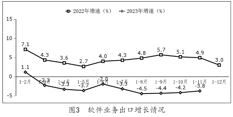 出口降幅持续收窄。1—11月份,软件业务出口449.5亿美元,同比下降3.8%。