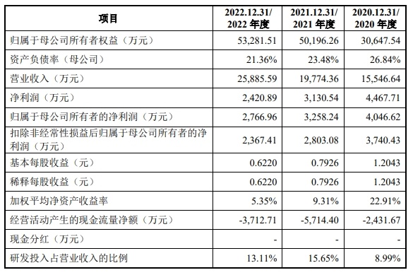 财务方面,于2020年、2021年、2022年度,天箭惯性实现营业收入分别约为1.55亿元、1.98亿元、2.59亿元。同期,该公司实现净利润分别为4467.71万元、3130.54万元、2420.89万元。