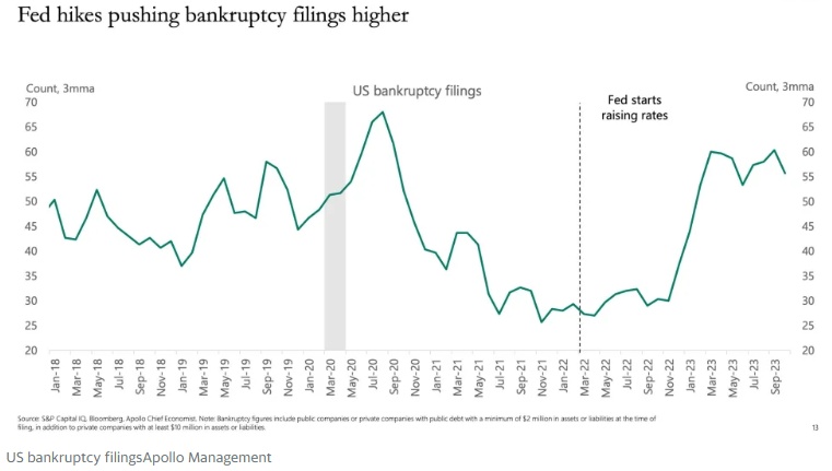 Sløk此前曾表示,美联储加息是导致破产增加的罪魁祸首。在上个月的报告中,他指出消费者也受到了影响。